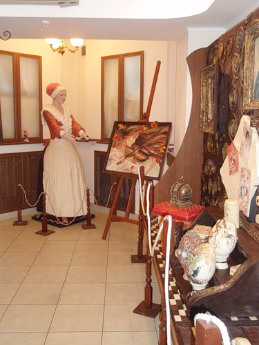 Здесь же можно увидеть шоколадные натюрморты и пейзажи, а также портреты известнейших людей (Колумба, Моцарта, Екатерины Первой), заключенные в, опять же, шоколадные рамы. Кстати, имеется в музее и копия короны императрицы, украшенная сахарным драже. Она покоится на аппетитной розовой подушке. Здесь многие посетители, привыкшие к «стандартным» цветам шоколада, могут удивиться. Но удивительного ничего нет. При изготовлении композиций в шоколад добавлялись пищевые красители.
